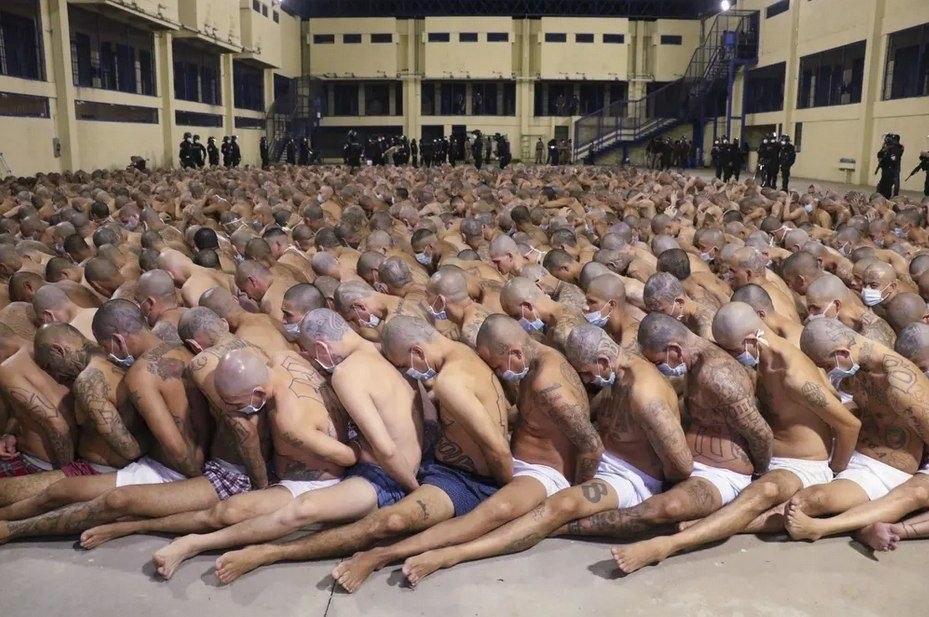 دفتر رییس جمهوری السالوادور این عکس را از شرایط بسیار امنیتی و سخت نگهداری اعضای باندهای تبهکار در زندان مرکزی " ایزالکو" را منتشر کرده تا زهر چشمی از اعضای باندهای خلافکار بگیرد.